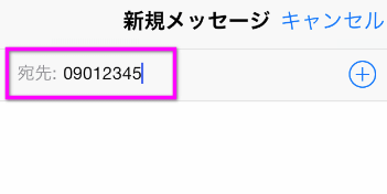 「宛先」の部分に自分のiPhone(か、友達のiPhone)の電話番号を入力します。