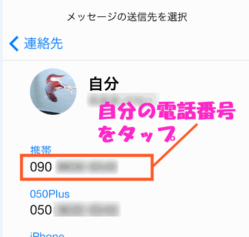 デフォルトでiPhoneの電話番号になっていると思いますが、ここをタップします。