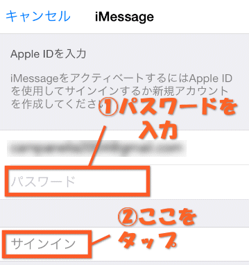 (ここにApple ID用のメールアドレスが表示されている場合、すでにiMessageは使えるようになっています)