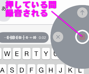 入力欄右横にあるマイクのボタンを、指でタップし続けると・・・