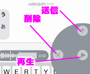 指を離すとこのようなボタン配置になるので、送信するか削除するか、再生するかを選択できます。