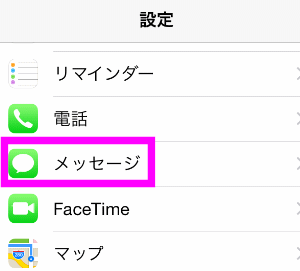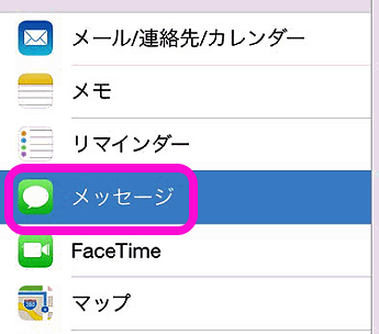 設定の中にある「メッセージ」をタップします。