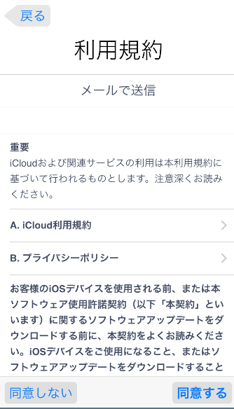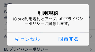 iCloud利用規約とプライバシーポリシーにも同意するをタップします。