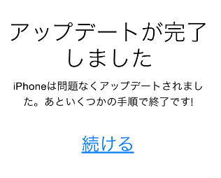 しばらく待っていると(ダウンロードを開始してから50分ぐらい)、このような画面になるので、「続ける」をタップします。
