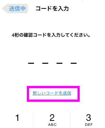 新しいコードが送信されました。となり、4桁の部分が入力された状態になりました。