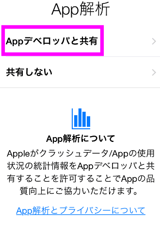 クラッシュした場合、統計情報を送るかどうか聞かれるので、「Appデベロッパと共有」をタップしました。