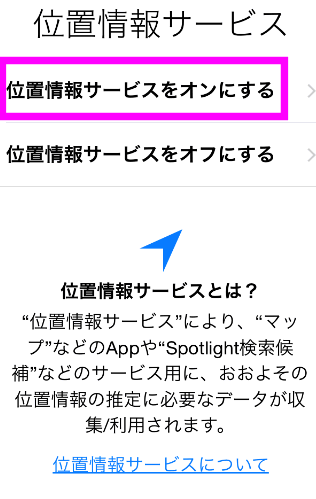 位置情報サービスをオンにする、をタップします。