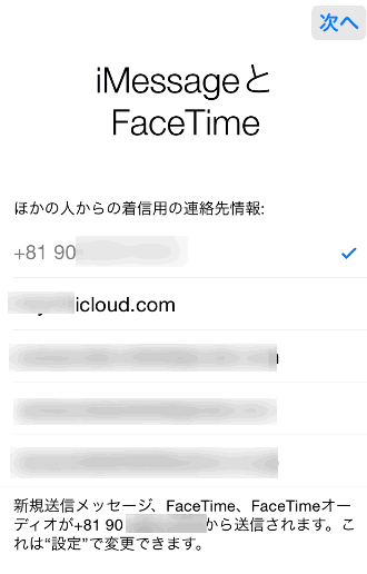 iMessageとFaceTime用のアドレス(電話番号かメールアドレス)にチェックを入れます。