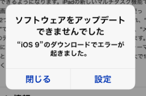 今回の場合は、ソフトウェアをアップデートしようとすると、このように「iOS 9のダウンロードでエラーが起きました」と表示されて、いっこうに進みません。