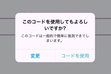 あまり簡単なパスコードだと、このように警告されますが、「コードを使用」で続けることが出来ます。