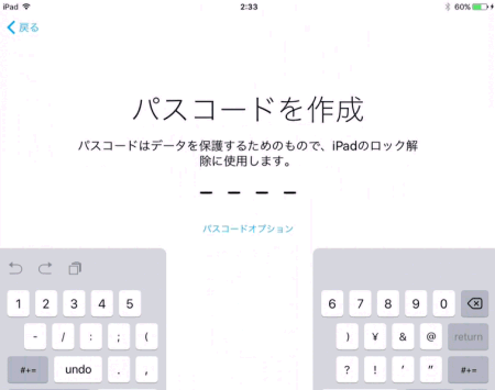 パスコードはiOS9から6桁の数字も選択できるようになりました。