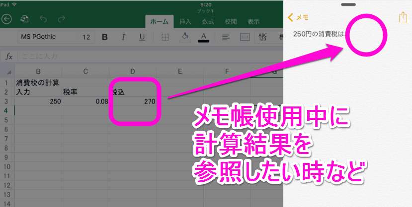 例えばメモ帳アプリ使用中に、エクセルの計算結果を見ながら・・・・