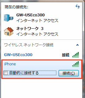 なお、「自動的に接続」にチェックを入れておくと、次回以降、iPhoneのテザリングをオンにしておくと自動で接続してくれます。