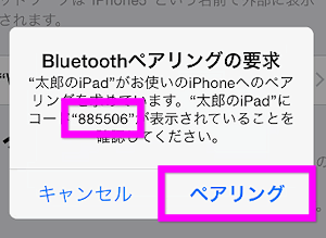 ペアリングの要求が表示されるので、「ペアリング」をタップします。