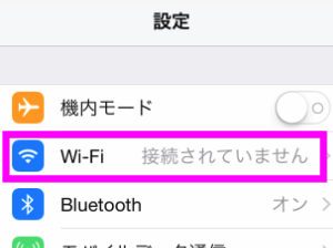 続いて、左の上の方にある「Wi-Fi」をタップし、右側のWi-Fiがオン(緑色)になっていることを確認します。