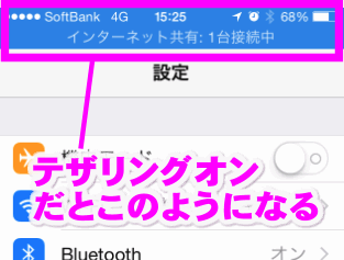 ただし、回線速度は遅くなります。Bluetoothによるテザリングは以下。