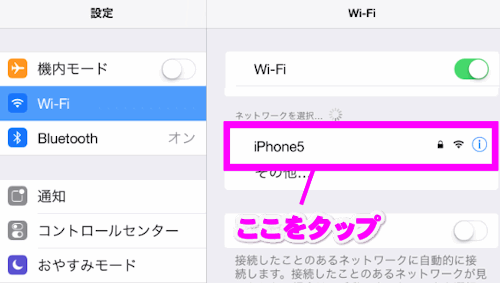 iPhoneという名前のアクセスポイントがあれば、ここをタップします。