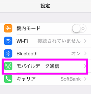 はじめてテザリングをする場合、「モバイルデータ通信」をタップします。