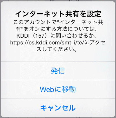 という警告が表示される場合、テザリングオプションの契約をしていない可能性があります。