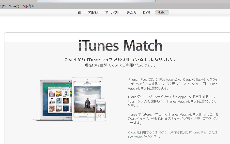 ようやくiTunes Matchが使えるようになりました。