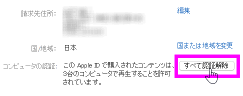「このコンピュータの認証を解除」を選択します。