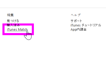 iTunes ストアが表示されるので、一番下までスクロールします。すると、「iTunes Match」という小さなリンクがあるのでここをクリックします。