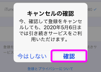 「確認」をタップ。