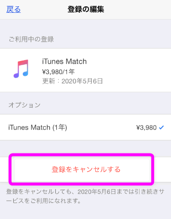 これでiTunes Matchを解約出来ました。