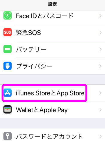 設定を開き、「iTunes SotereとApp Store」をタップします。