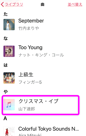 試しに、山下達郎さんの「クリスマス・イブ」をタップしてダウンロードしてみると、雲のアイコンが消え再生されました。