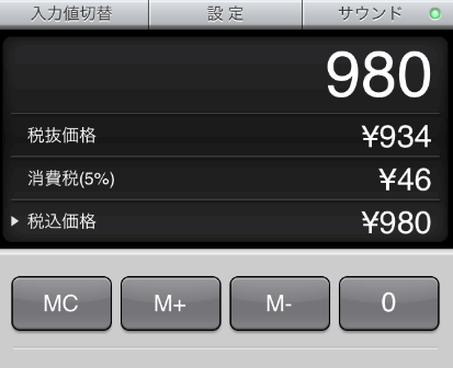 消費税が自由に変更でき、税込み、税抜き価格が簡単に切り替えられる、iPhoneの計算機を紹介します。