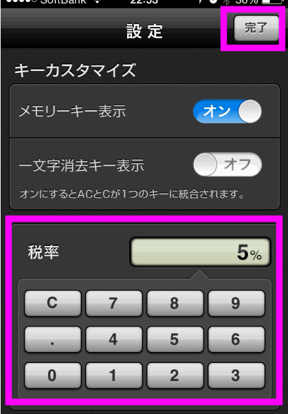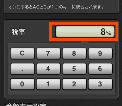 「税率」の部分にある数字をタップすると、税率を変更できます。