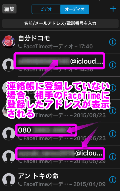 こうしたことを防ぐために、FaceTimeに使用するアドレスは、そのiPhoneの電話番号にしてください。