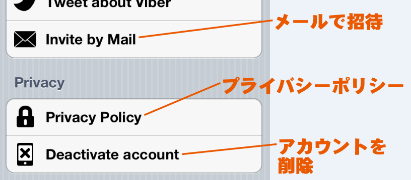 Settingは、Viberの設定ができます。これについては下で解説しています。