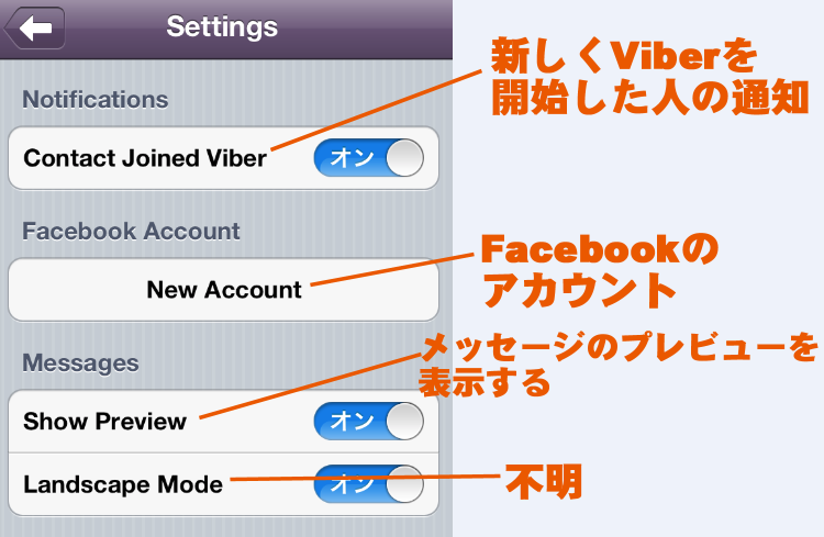 Contact Joined Viberは、電話帳に登録してある人がViberを使い始めたら、通知するか。の設定。
