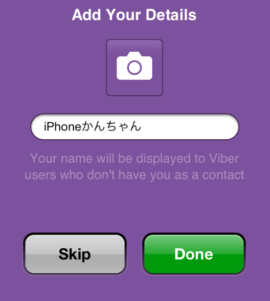 と、その前に最新のバージョンのViberでは、相手に表示されるプロフィールを設定することが出来るようになりました。