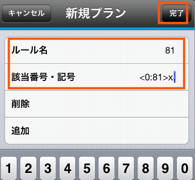 「ルール名」に適当な名前(81とか)を入力し、「該当番号・記号」の部分に、