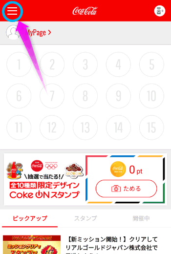 なおその下の「Coke ON IC 電子マネー設定」は、カードタイプのSuicaやWAON、nanacoなどを登録する場合です。ここに電子マネーカードを登録すると、そのカードを使って自動販売機でジュースを購入すると、自動でスタンプがたまる仕組みになっています。