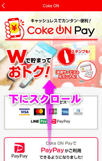 「Coke ON Pay」の画面が表示されるので下にスクロールします。