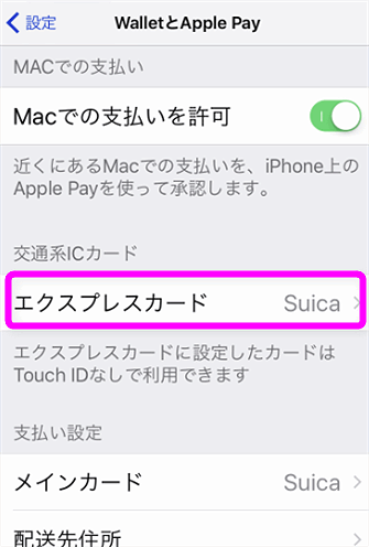 このエクスプレスカードとは、Apple Payを使用するときに指紋認証をしなくてもかざすだけで使える機能のことです。