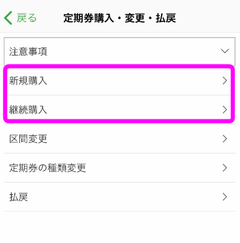 「通勤定期券」をタップします。