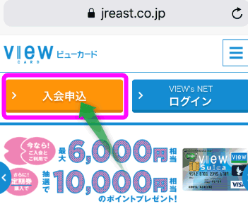 Viewカード公式サイトを開き、「入会申込」をタップします。