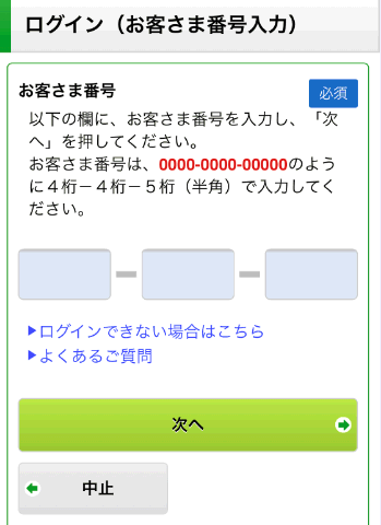 続いてゆうちょ銀行のページが表示されるので、お客様番号を入力してログインします。