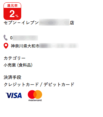 セブンイレブンのような大手コンビニのようなチェーン店は還元率は2%になります。