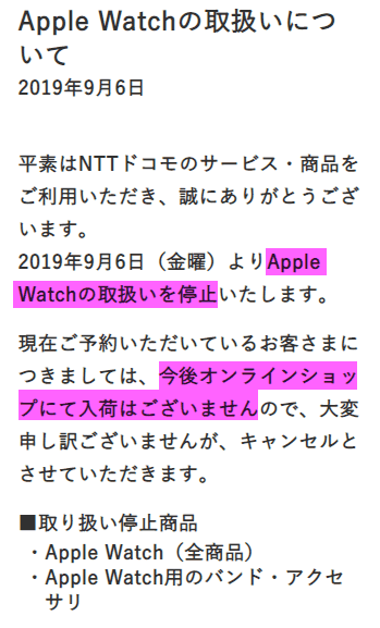 私の持っているiPhoneはドコモのSIMを使っているのでドコモのオンラインショップでApple Watchを購入しようとしたら、なんとドコモはApple Watchの取り扱いを停止したらしい。。。