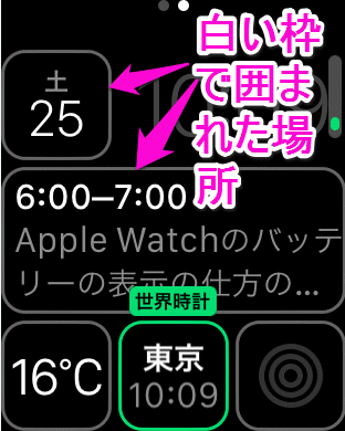 ちなみにデジタルクラウンで選択出来る項目が複数ある場合、ここにスクロールの位置が表示されるので目安にしてください。