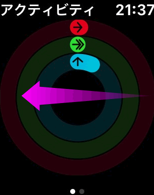 タップすると、ファミリ共有したApple Watchで取得した「ムーブ」「エクササイズ」「スタンド」「歩数」「距離」などが表示されました。