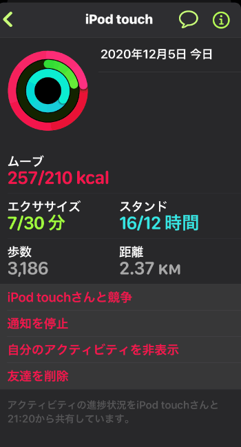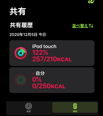 これでファミリ共有したApple WatchのアクティビティがiPhoneで見られるようになりました。