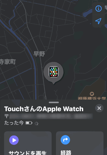 ファミリー共有しているApple Watchの現在位置が表示されました。