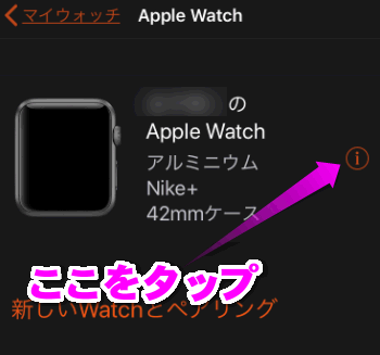 もう一度Apple Watchの名前が表示されるので右側にある i の部分をタップします。